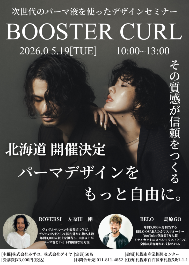 をお招きし次世代パーマ、ブースターカールセミナーを行います。