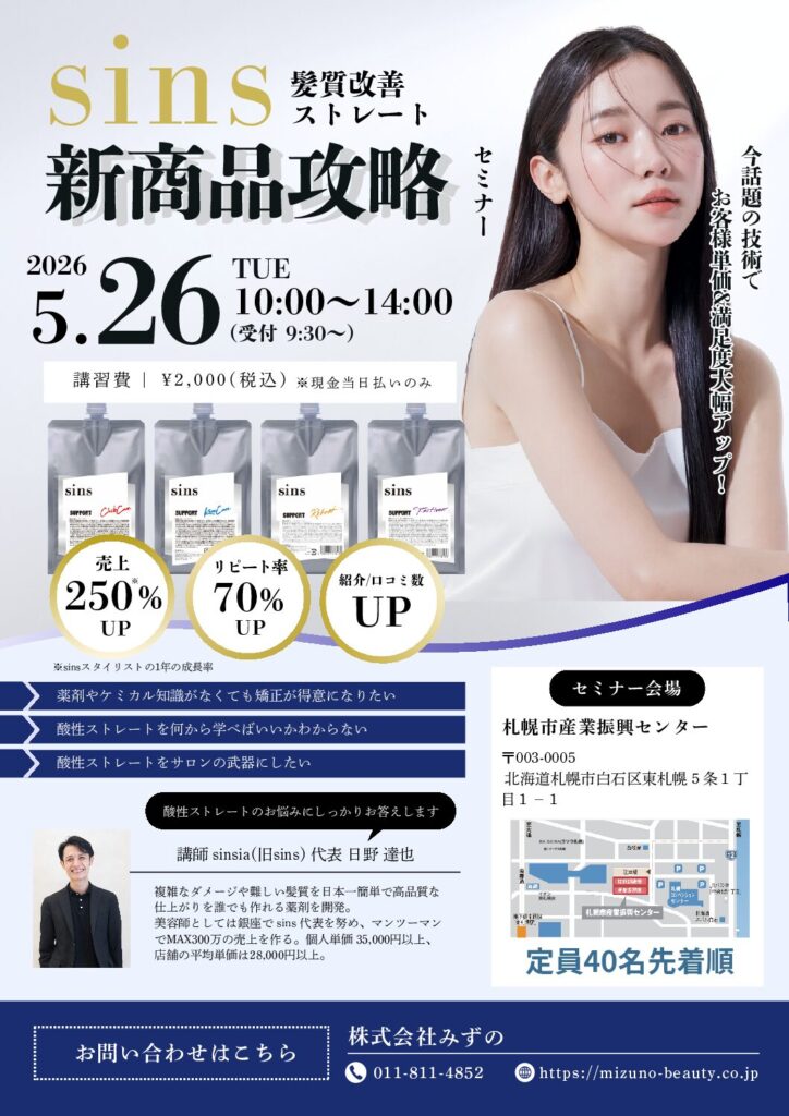 ご好評いただいておりますsinsストレートセミナーを5月26日(火)に開催いたします。